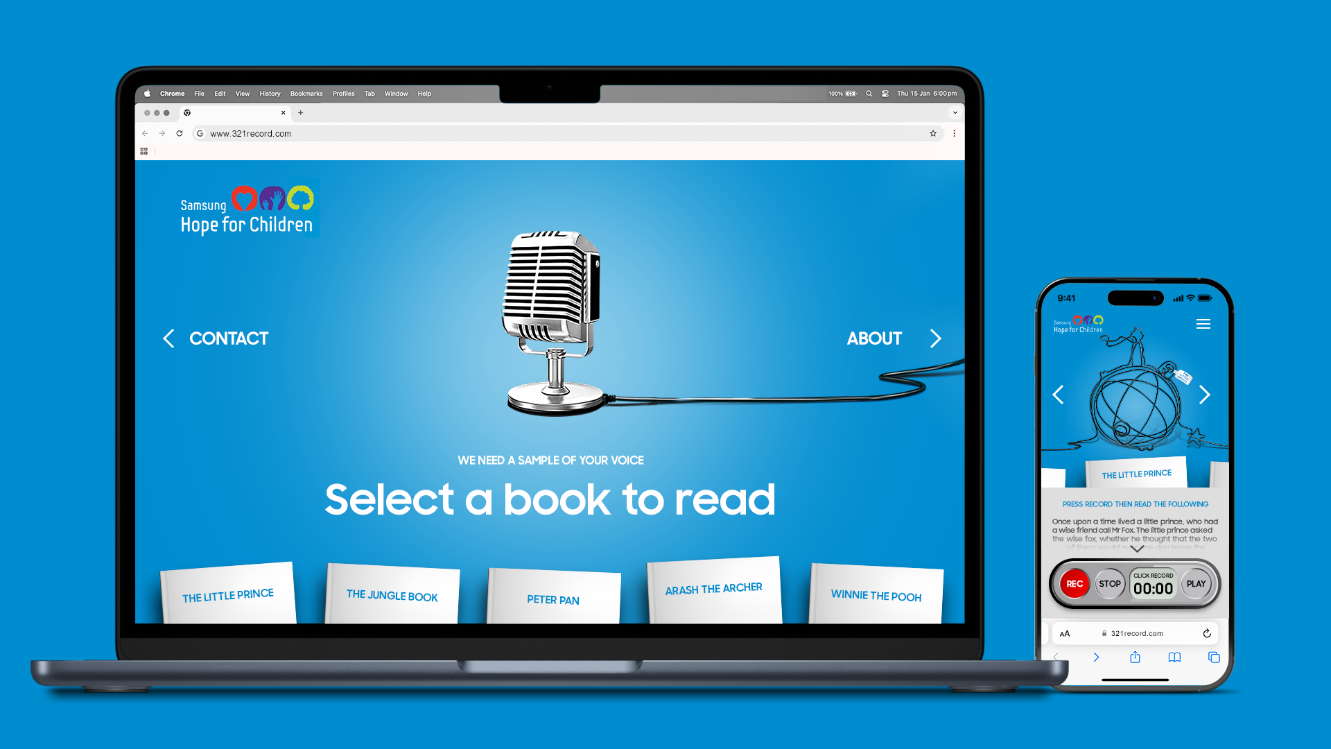 I led an award-winning Samsung CSR campaign that turned social responsibility into public participation—inviting people to donate their voices to build audio libraries for blind children.